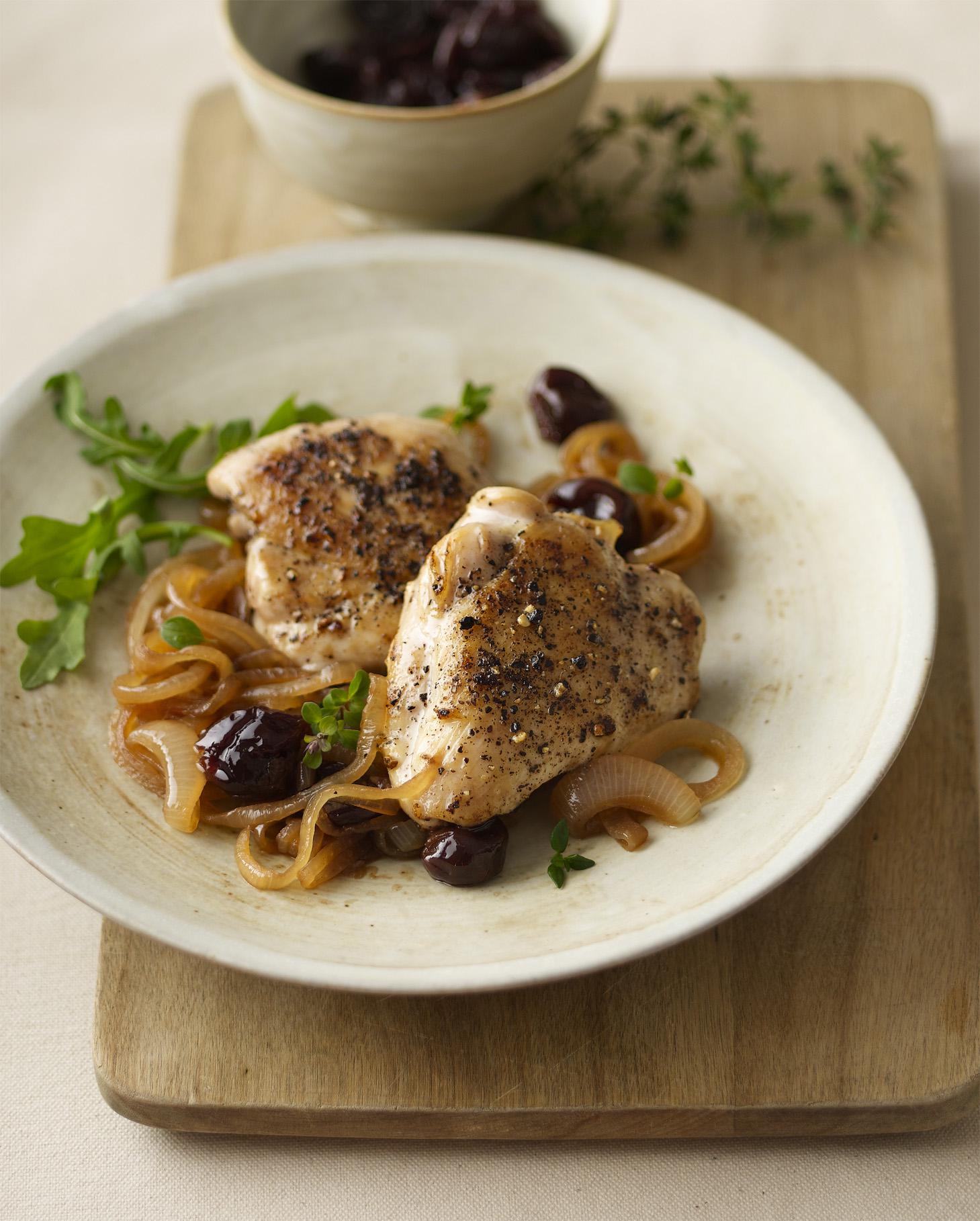 This updated version of “hunter’s chicken” is made with a lighter hand and bolder flavors. Serve over hot cooked farro or Israeli couscous.