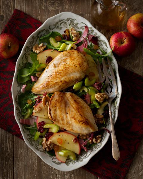 If you’ve got some pungent bleu cheese or crumbly aged goat cheese on hand, toss some onto these welcoming winter salads. The richness of a nut oil in the dressing rounds out the toasty flavor of the dish. Like any good Waldorf, this one features the best of winter apples—dressed up with a delicate walnut oil vinaigrette.