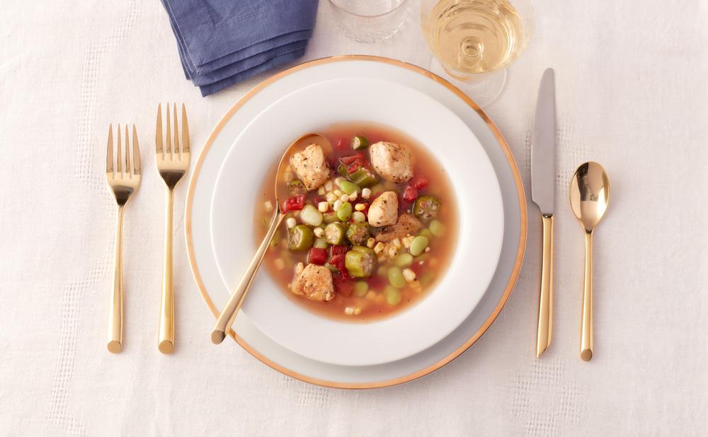 One of the recipes Martha Washington recorded is a light, flavorful vegetable and chicken soup that she attributes to Dolley Madison, the wife of the fourth U.S. president, James Madison. If you’re new to okra, Southern Chicken Okra Soup is a great way to try it in combination with other healthy ingredients such as tomatoes, corn and lima or butter beans. You can find both the corn and okra (already sliced) in the frozen food section of your local grocery.