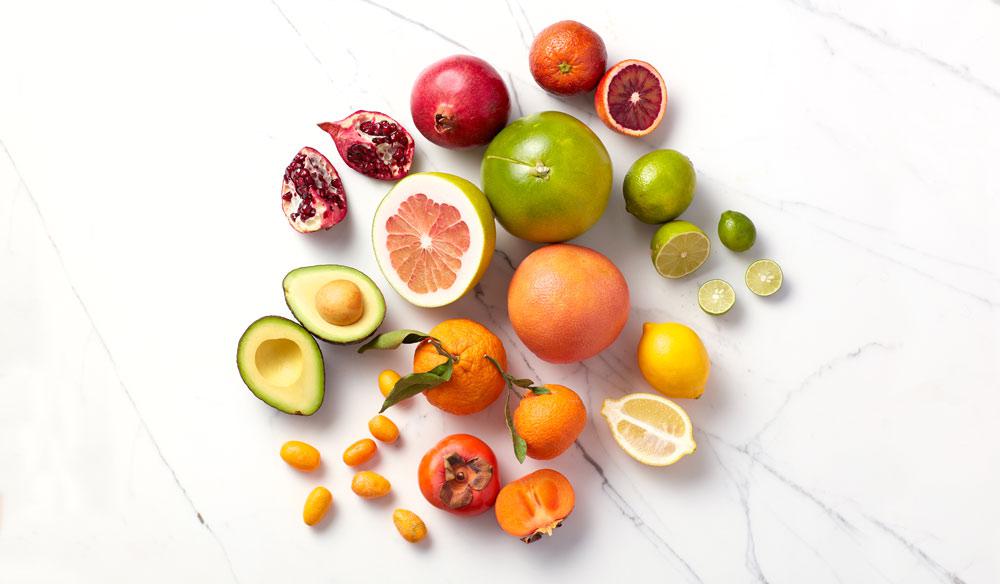 No matter where a GPS finds your neighborhood, we’re deep in the heart of cooler (or downright frigid) weather. Many of us yearn to fly to warmer climes, playing snowbird. These are the lucky folks who spend their winter months in Arizona, Florida or Texas, living on the edges of citrus groves, avocado ranches or on streets lined with pomegranate trees. But even if you can’t escape, now is the time to gather up the best of what winter offers-sparkling fruits that can revive dreary days and sagging appetites. All are storehouses of restorative vitamins, minerals and other beneficial nutrients.