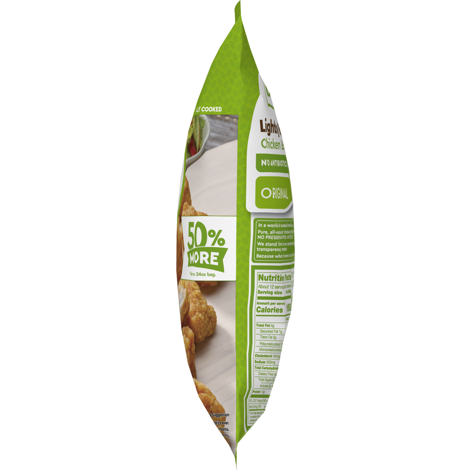 BONELESS SKINLESS CHICKEN BREAST, WATER, SEASONING (SUGAR, SALT, SPICES INCLUDING PAPRIKA AND CELERY SEED, CHICKEN FAT, SPICE EXTRACTIVE, CANOLA OIL, SOYBEAN OIL), RICE STARCH. BREADED WITH: WHEAT FLOUR, SUGAR, SALT, NONFAT DRY MILK, DRIED EGG WHITES, BAKING POWDER, SPICE, PAPRIKA. BREADING SET IN VEGETABLE OIL. Contains: Milk, Eggs, Wheat