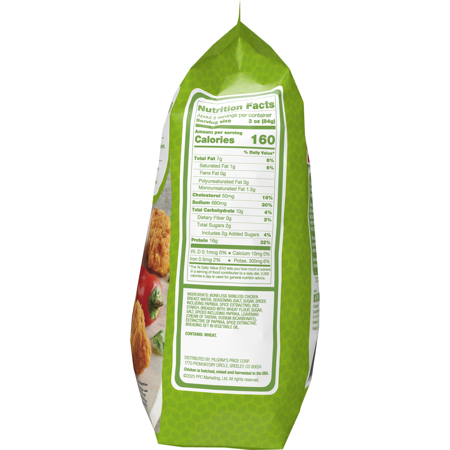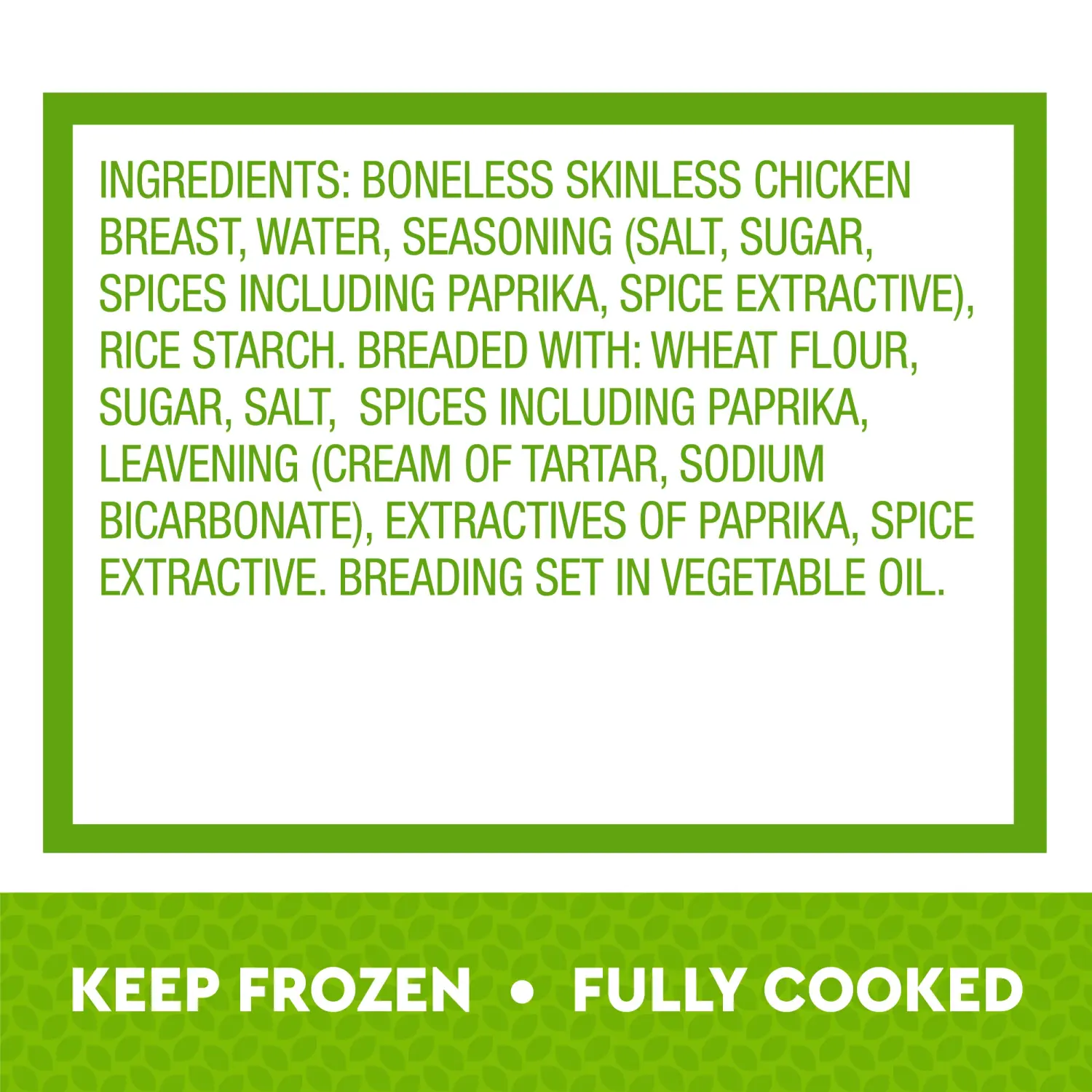 BONELESS SKINLESS CHICKEN BREAST, WATER, SEASONING (SALT, SUGAR, SPICES INCLUDING PAPRIKA, SPICE EXTRACTIVE), RICE STARCH. BREADED WITH: WHEAT FLOUR, SUGAR, SALT, SPICES INCLUDING PAPRIKA, LEAVENING (CREAM OF TARTAR, SODIUM BICARBONATE), EXTRACTIVE OF PAPRIKA, SPICE EXTRACTIVE. BREADING SET IN VEGETABLE OIL. CONTAINS: WHEAT