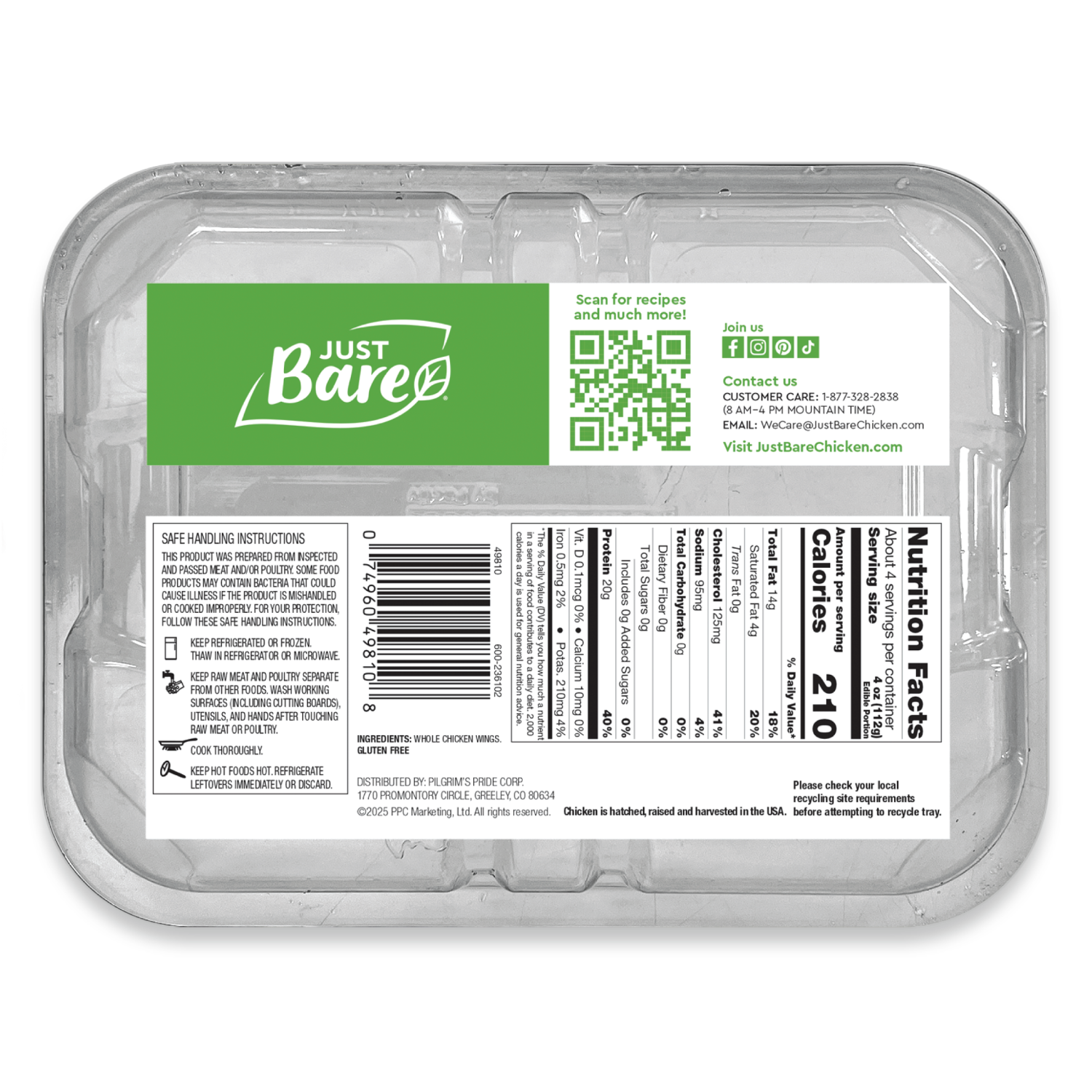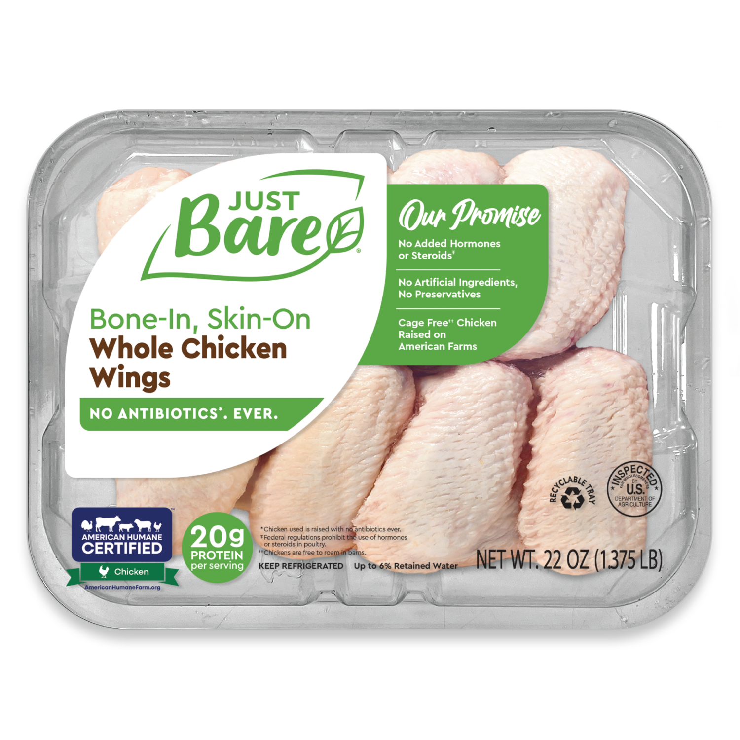 Just Bare® Whole Chicken Wings are minimally processed for quality you can see and taste. Whether you're baking, grilling, or air frying, these wings are perfect for soaking up your favorite sauces or seasonings. They're fresh, versatile, and packed with mealtime potential. From game day to every day, these wings are perfect for your crave-worthy creation. As always, Just Bare® provides chicken that features no antibiotics, ever*. Has no added hormones or steroids†. Uses no artificial ingredients or preservatives and uses chickens raised cage free on American farms‡.