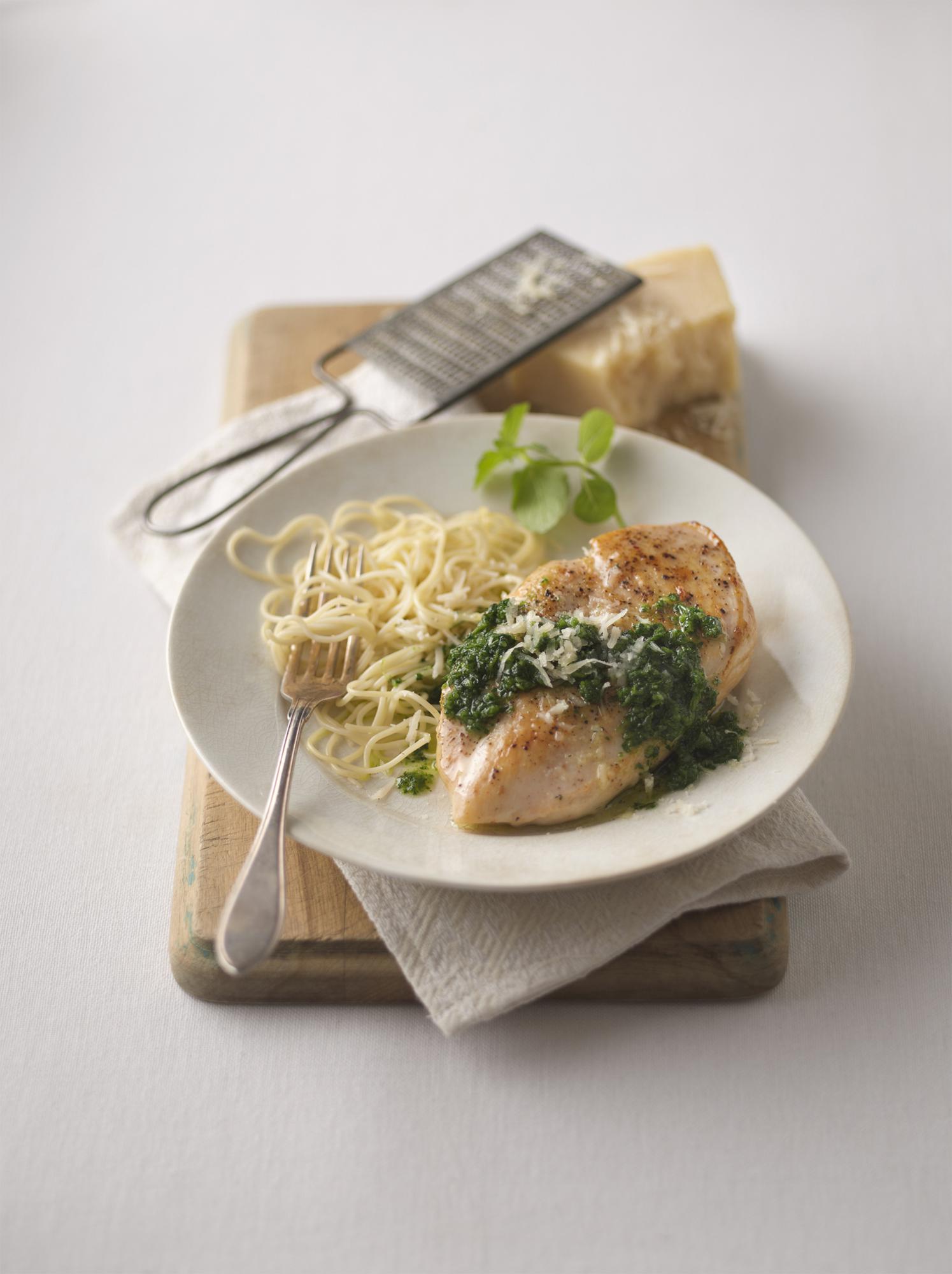 - Serve chicken with a dollop of pesto.