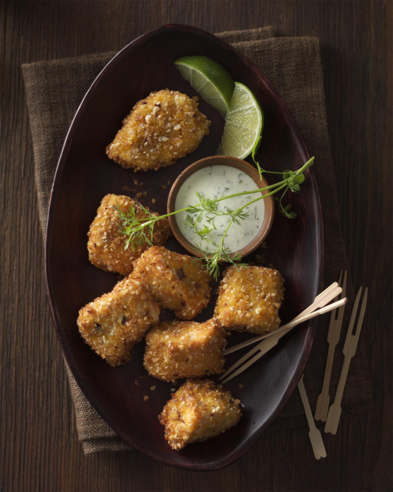 For even crunchier chicken chunks, shallow fry the chicken in about ½-inch oil in a large, deep skillet. Make the dip ahead and refrigerate until party time—the flavor will only get better.