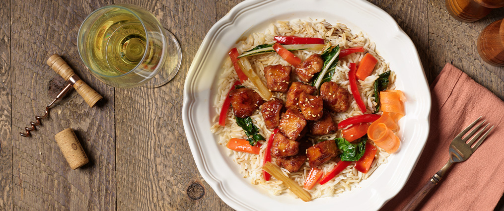 - In a skillet, warm olive oil and toss chicken with hot honey, soy sauce, and garlic powder until glazed.