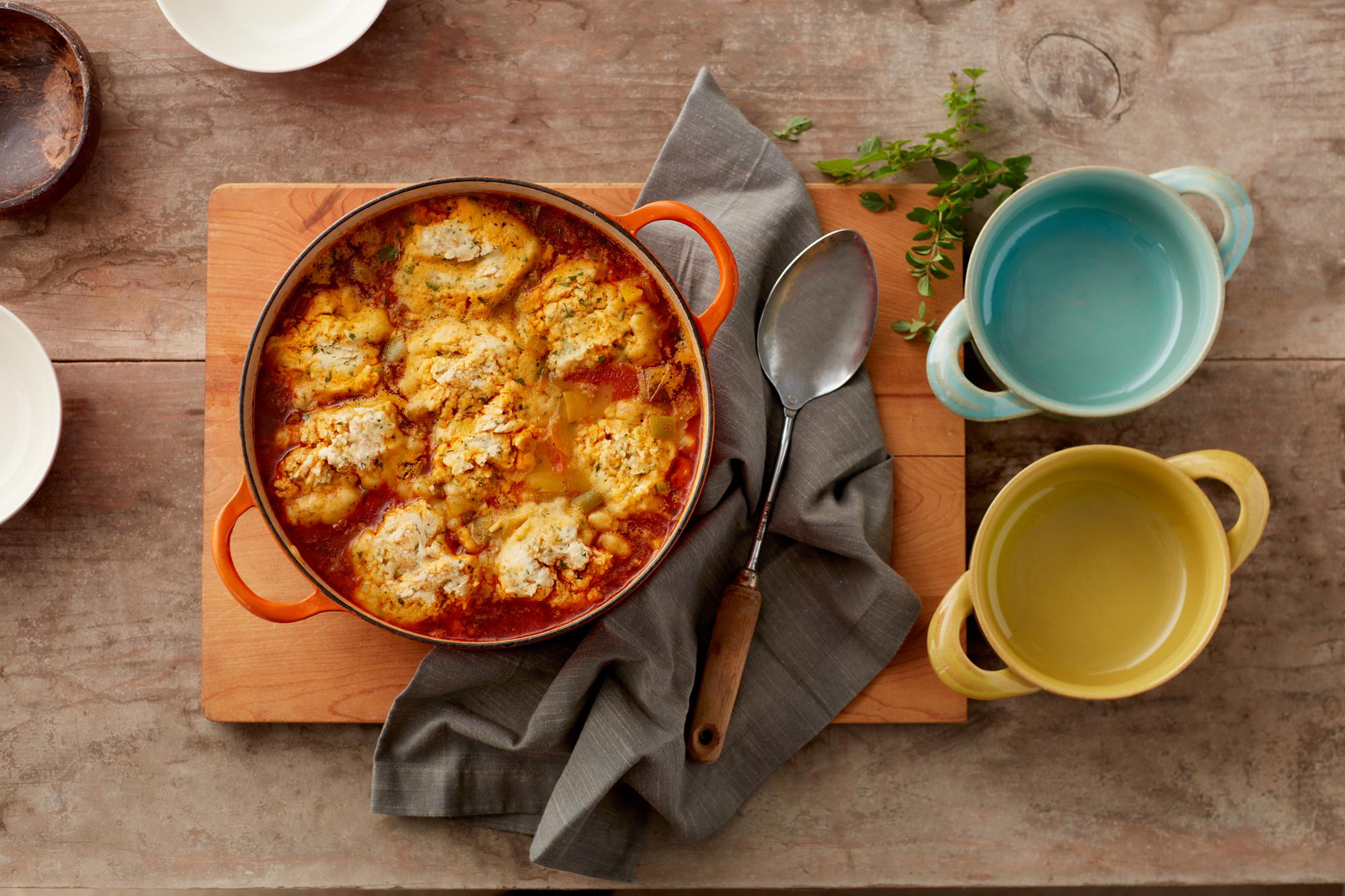 Look for corn masa flour in the baking aisle, where it usually sits next to coarser cornmeal. Masa, a finer grind of corn that is treated with lime, is used to make corn tortillas but also makes terrific dumplings. The ingredient list might look long, but most are in your pantry waiting to be transformed into this warming stew—a fun twist on a classic that reflects a new region of American cooking.