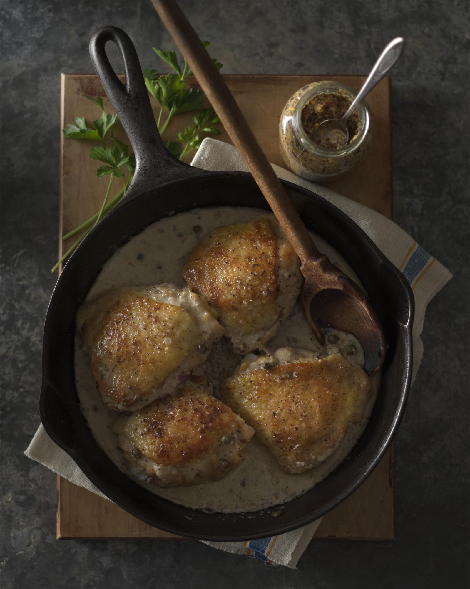 Sauteed Chicken Thighs in Mustard Caper Sauce