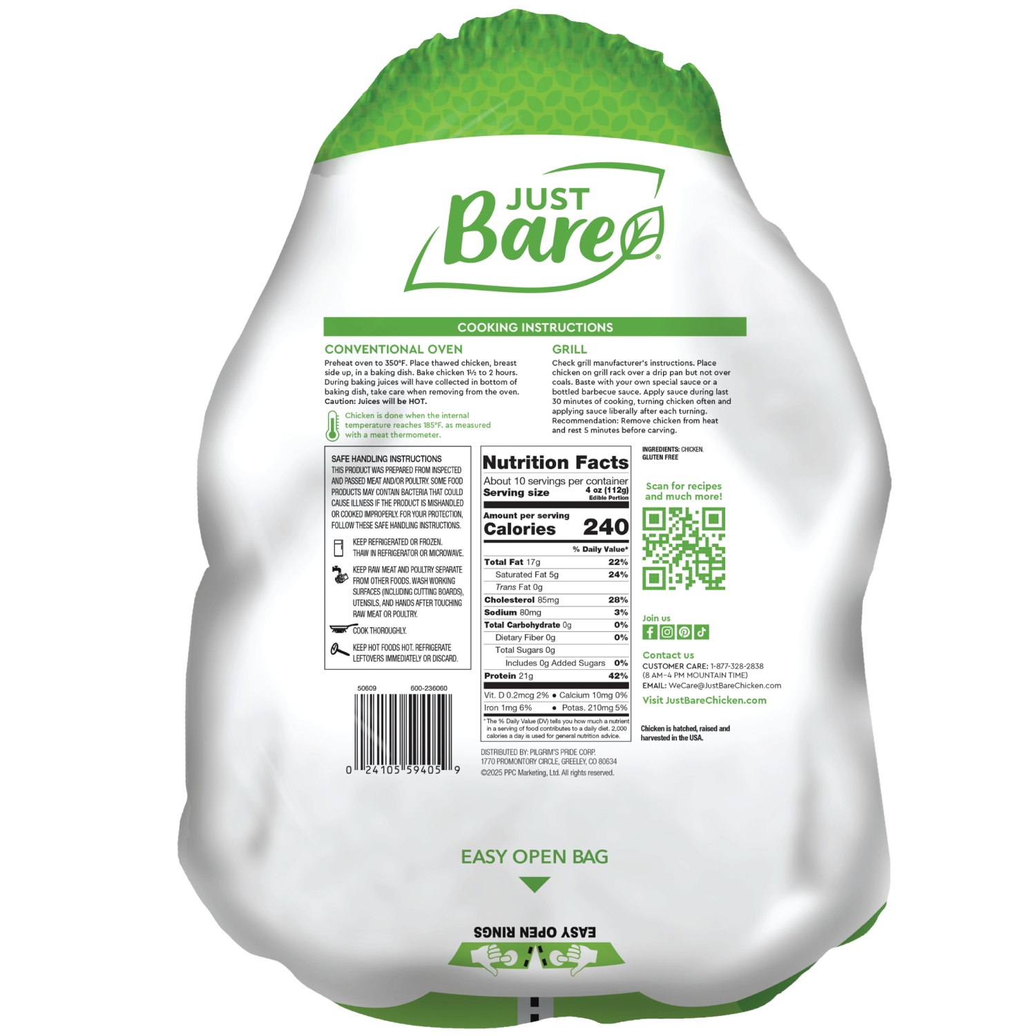 Sometimes purchasing a whole chicken can seem overwhelming. We get it. Our Just Bare Young Chicken is not only hearty and versatile, but it’s a quick and easy way to feed the family. Not to mention you can make weekly meal prep a breeze by using the leftovers. As always, Just Bare® provides chicken that features no antibiotics, ever*. Has no added hormones or steroids†. Uses no artificial ingredients or preservatives and uses chickens raised cage free on American farms‡.